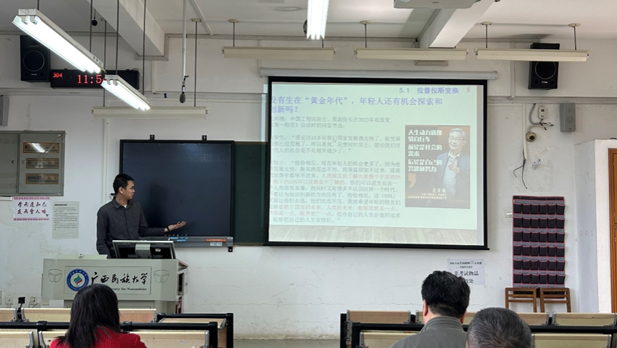 本次比赛共有5位青年教师参加,讲授课程包括《信号与系统》《Java语言程序设计》《C语言程序设计》《模拟电路》等。学院院长罗丽平教授、学校督导韦文山教授、学院督导马伏花老师、侯义峰老师、张安华老师担任此次比赛评委,对青年教师的教学理念、教学方法和教学能力进行了多角度、全方位评定。学院部分教师观摩了整场比赛。