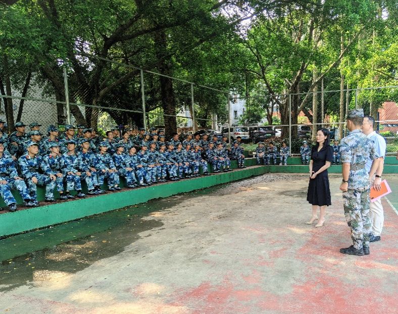 9月13日上午,学院党委书记张婧,党委副书记、纪委书记罗少科和辅导员邓云斌、李旭、张金歌一行来到新生训练场地,看望承训教官及受训新生。