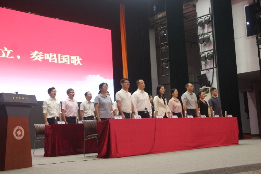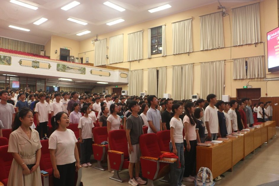 2024级新生见面会在雄壮的国歌声中拉开帷幕。