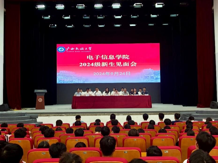 9月24日下午,电子信息学院在相思湖校区大礼堂举行2024级新生见面会。学院党委书记张婧,学院党委副书记、院长罗丽平,学院党委副书记、学院纪委书记罗少科,副院长文春明、卢振坤,科级干部、系主任、辅导员、新生班主任以及全体2024级本科生、研究生参加。会议由罗少科主持。