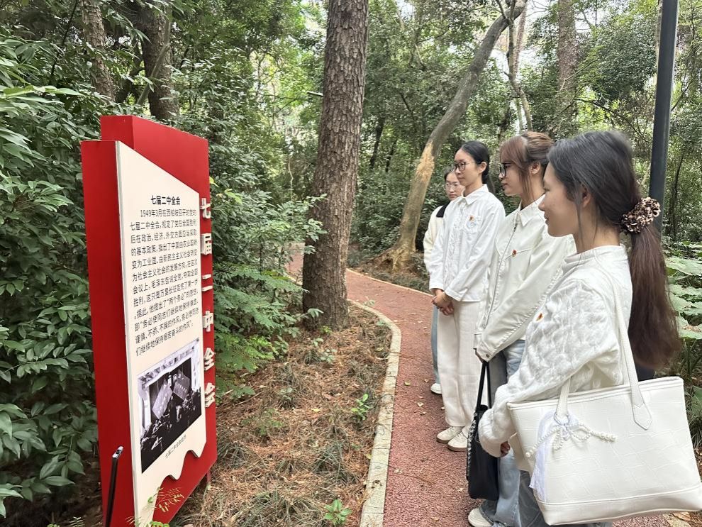 12月23日,必威西汉姆联党委在广西民族大学党史学习教育长廊——百年奋进路举行2025年下半年新发展党员入党宣誓仪式。党务秘书韦秋竹及全体新发展党员参加。